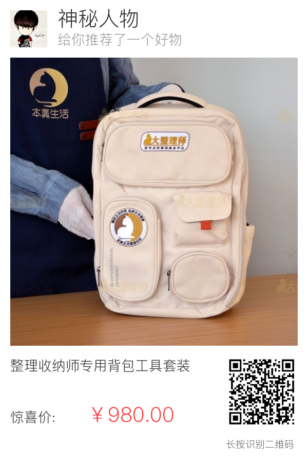 6、包上印大整理师的logo。本真生活的logo是本部团队专用,这个位置你可以印自己的logo。