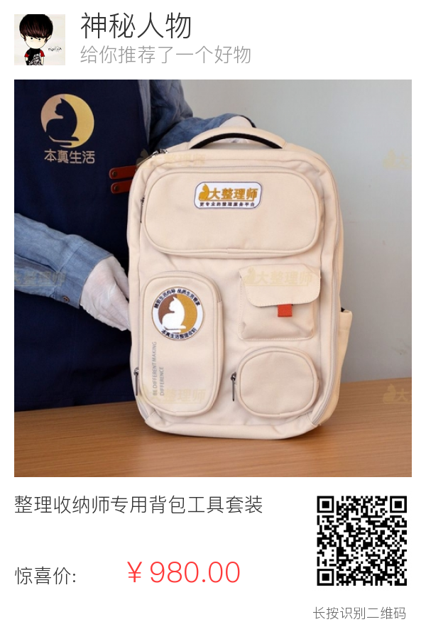 6、包上印大整理师的logo。本真生活的logo是本部团队专用,这个位置你可以印自己的logo。